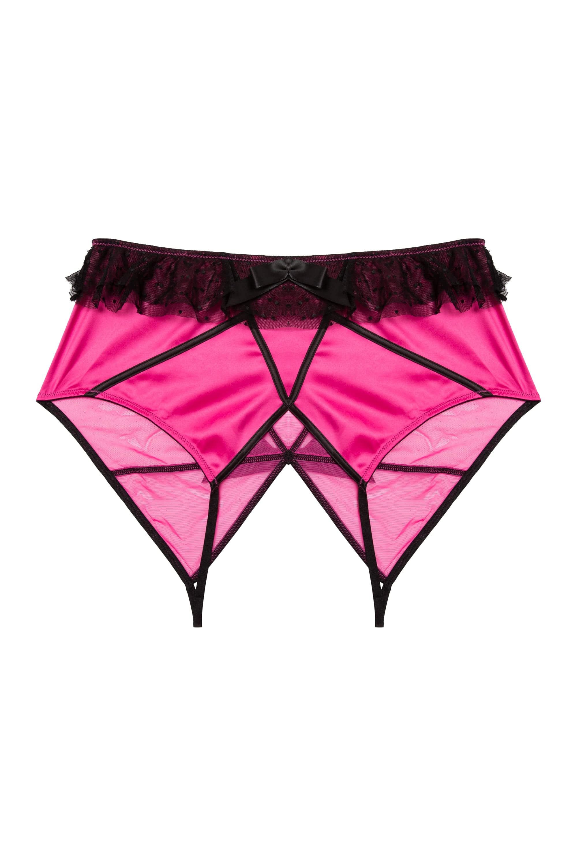Make a statement in Inga. Our Inga Net Ruffle Crotchless Knicker is constructed from hot pink satin with a black net ruffle detail around the waist and finished with a naughty cut out detail in the crotch. Match with the Inga Bra and Suspender Belt for the full sexy set.